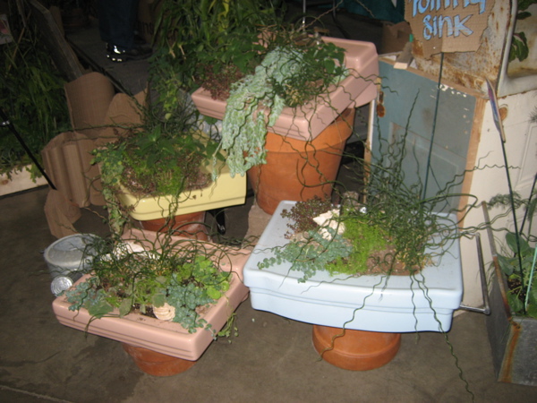 Creative re-use of … stuff. We found these even before walking by the Construction Junction booth. This is what we want our backyard to look like someday.