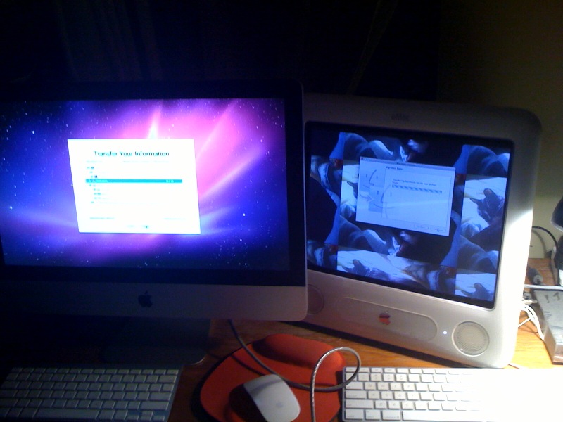 I haven’t spent a whole lot of time in front of the computer in the last few days, but that’s about to change. At this moment, the old eMac is spitting data at our new iMac, and once that’s ready to go, I think I won’t be able to help but sit in front of that beautiful new machine.