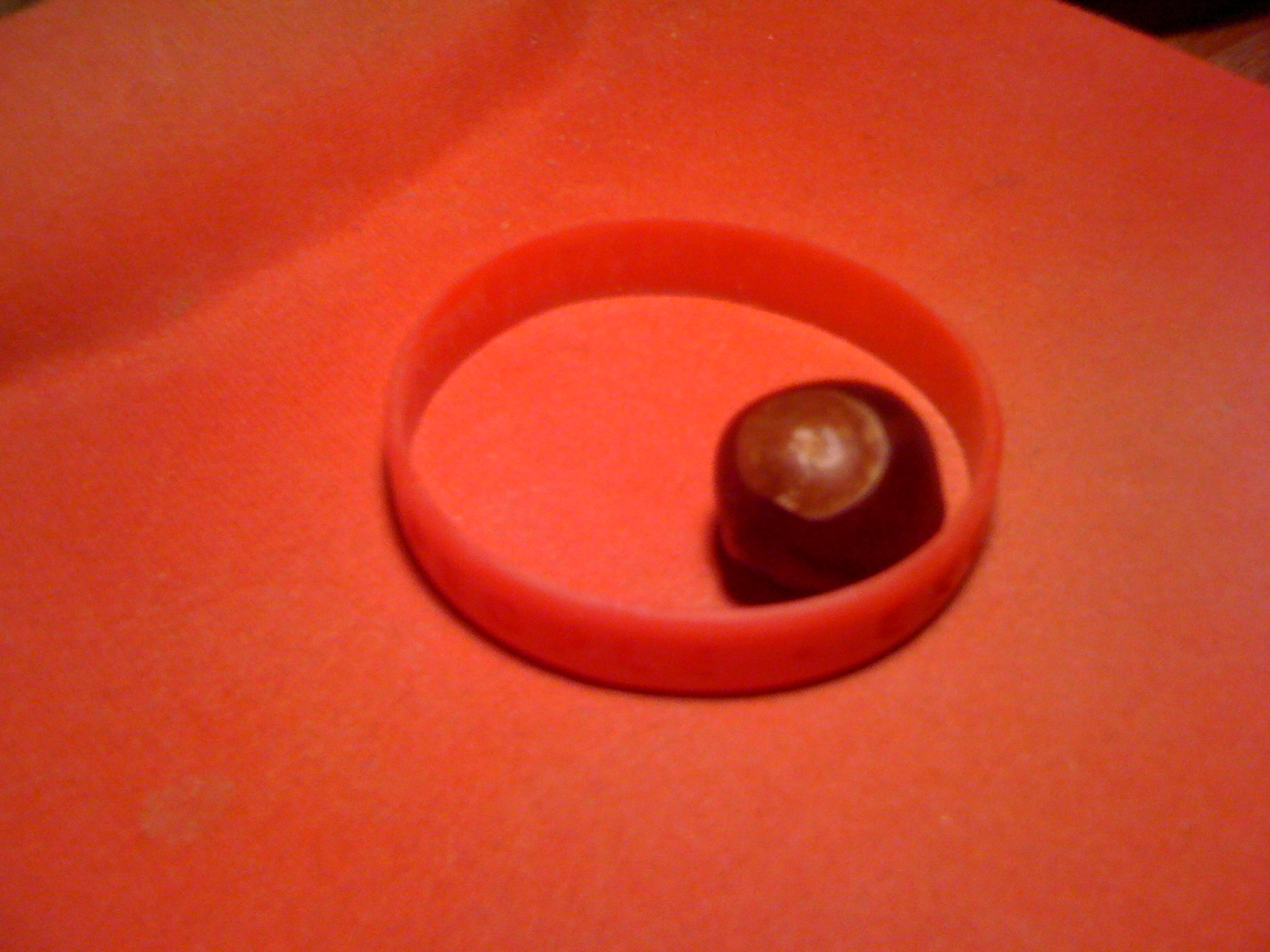 Since Sept. 4, this red bracelet — which reads “People – Tradition – Excellence” — has stayed on my left wrist. Since Saturday, Sept. 5 — when Ethel picked it out of a bowl at the season’s first tailgate party — this buckeye has not been moved from the right front pocket of whatever pants I was wearing.