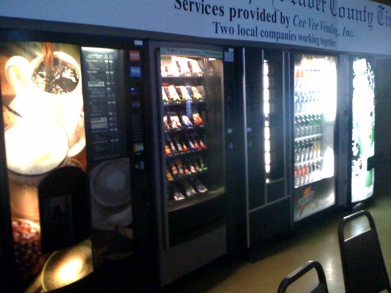 We don’t keep snacks at home. And while I know I can buy all the crap I want at the grocery, these machines in the back of the building are awfully convenient when I get hungry and don’t have time to leave and get a decent meal.