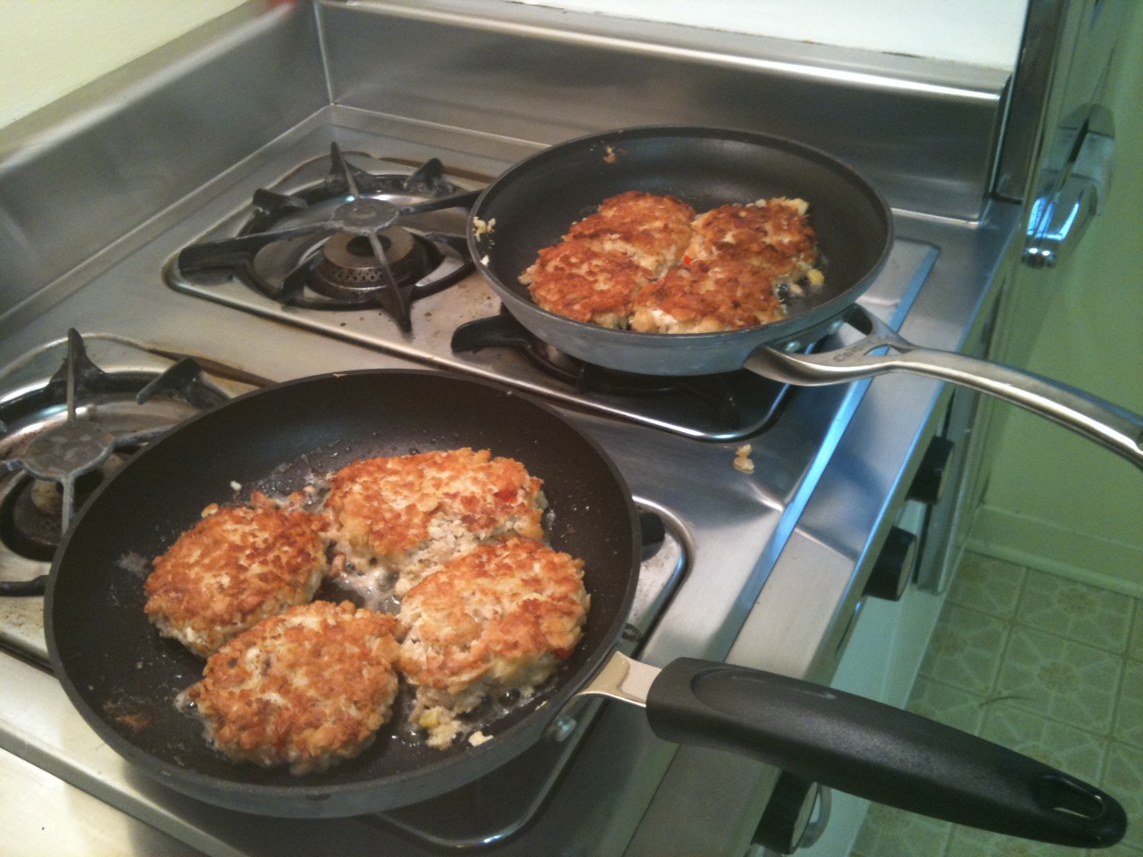 * I also made a double batch of crab cakes on Tuesday. They were to be for Mrs. Crappy’s aunt, but our plans got kinda messed up, so we ate crab cakes for dinner two nights in a row. Excessive? Sure. Good? Oh, yeah…