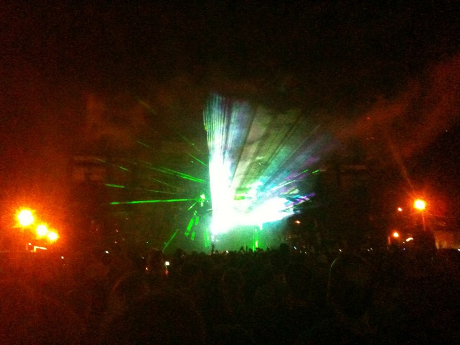 * I was melted into a puddle of goo on Tuesday night at the Flaming Lips show at the Trib IC Total Chevy Media Light Amphitheater at Station Square. Fred has been telling me for a couple of years that it’s impossible to walk away from a Flips show without “just feeling … happy.” And he is exactly right, despite the fact that much of the stuff the band played from Embryonic is considerably darker than their other recent albums. But with the balloons, the confetti guns, the lights — AND THE MICS THE BAND PLACED ALONG THE RAILROAD TRACKS HOLYCRAPLOUDTRAINNOISES — it was a stunning aural and visual feast. And, yes, I came home grinning like an idiot.