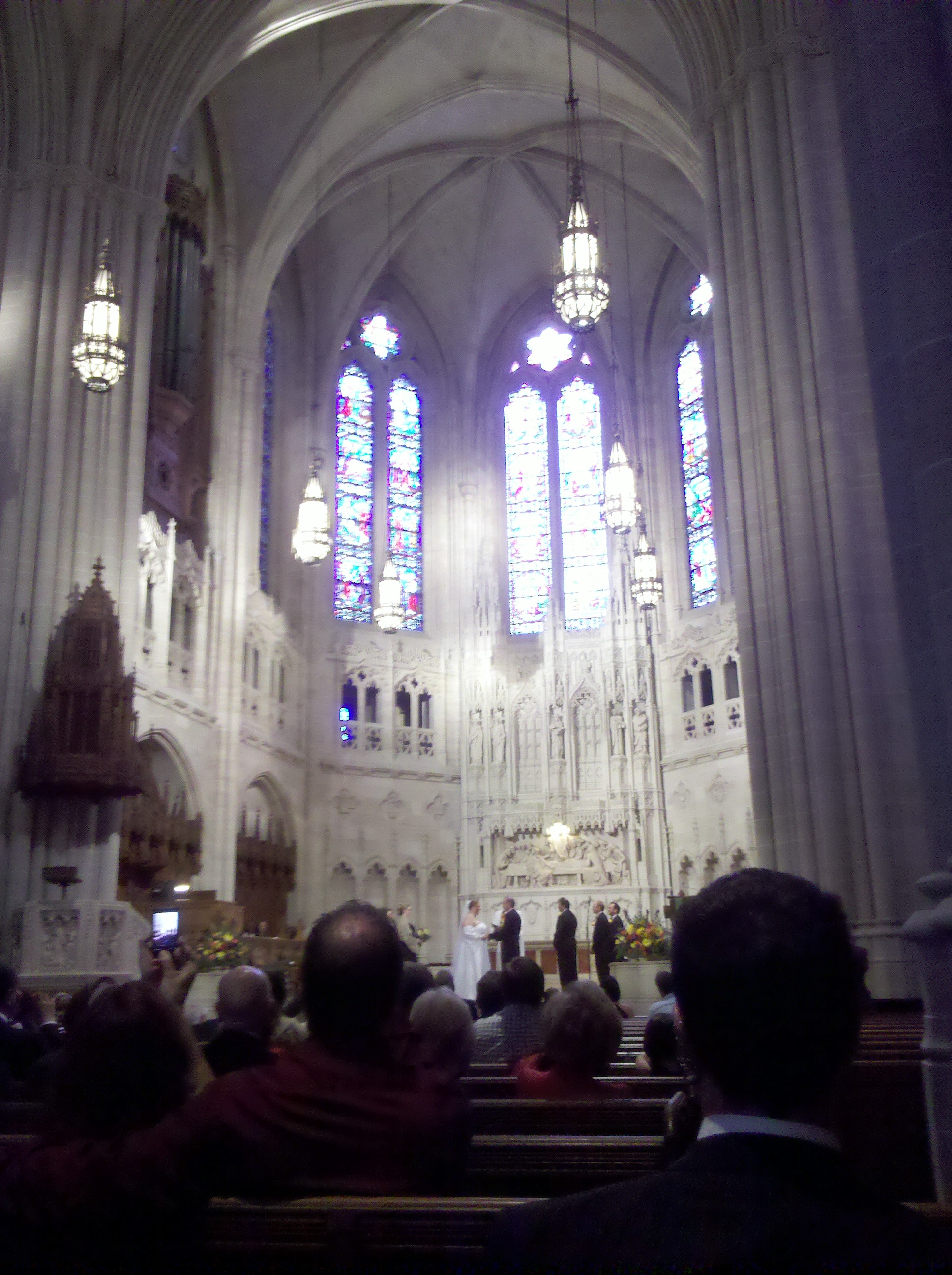 If you mention the word “church,” this — a shot taken at Derrick and Gwen’s beautiful wedding last weekend at the East Liberty Presbyterian Church — is the image most people would come up with.