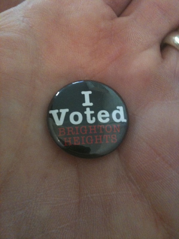 Love the button! So much cooler than a sticker. Kudos to the precinct workers in Brighton Hts.