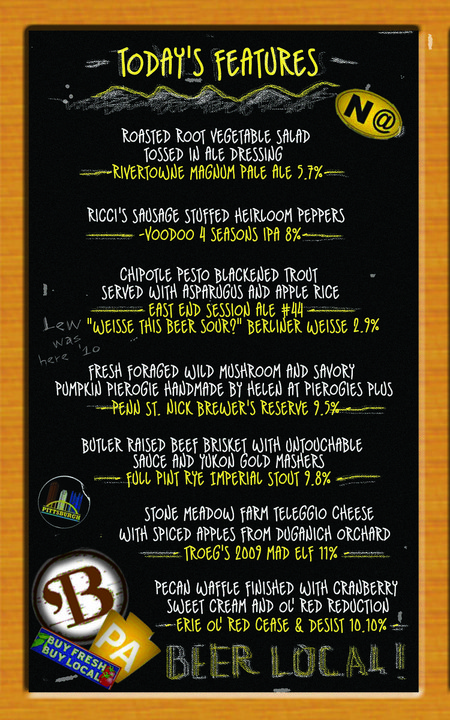 Mrs. Crappy surprised me last week with a ticket to the dinner, which features Pennsylvania beers, locally sourced and prepared food and commentary from Lew Bryson, the Philly beer writer who’s touring the state to promote the release of the latest edition of Pennsylvania Breweries, his excellent guide to beer — craft and otherwise — in the state.