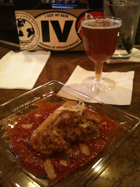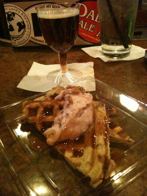I didn't take pictures of a couple courses, but I couldn't miss this one: a pecan waffle with a cranberry sweet cream and a reduction of Erie's Ol' Red Cease and Desist. Which also happens to be what's in the glass. A perfect finish.