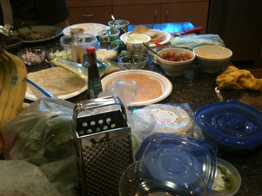 I didn’t think to take a picture before we ate, so all you get to see is the damage. This was what was left after an afternoon of tacos and beer with friends I don’t get to see often enough, all in Clumberkim’s kitchen (which I don’t get to cook in often enough). I suppose it’s possible that I could have had a better afterno0n, but at the moment, I’m not sure what that would entail. Thanks, y’all.