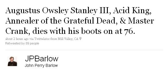 If I had to pick one guy, outside of the immediate circle of musicians or lyricists, who was responsible for the success of the Grateful Dead, it would be Augustus Owsley Stanley III.