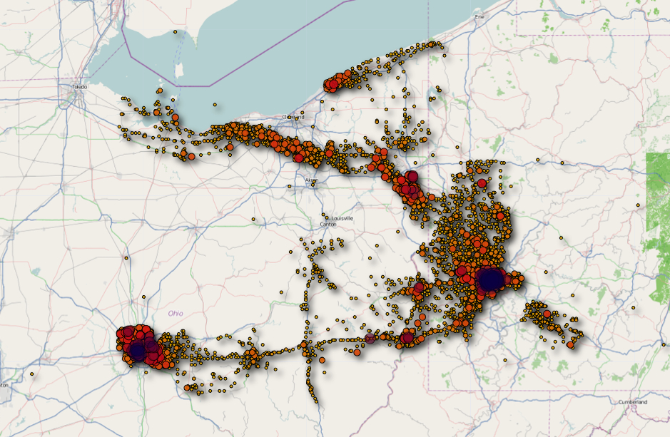 We got all excited yesterday when a couple of data scientists released a nifty little app yesterday that digs up the data from iPhones and iPads and displays the information on a map. Take a look at mine. It picks up with our little trip to Kelleys Island late last summer; it’s pretty obvious that football season — and the subsequent trips to Columbus — is included; there are stops in Youngstown (Vintage Estates) and Butler (haircuts, Gorillo’s and Natili north); and plenty of time in and around Pittsburgh.