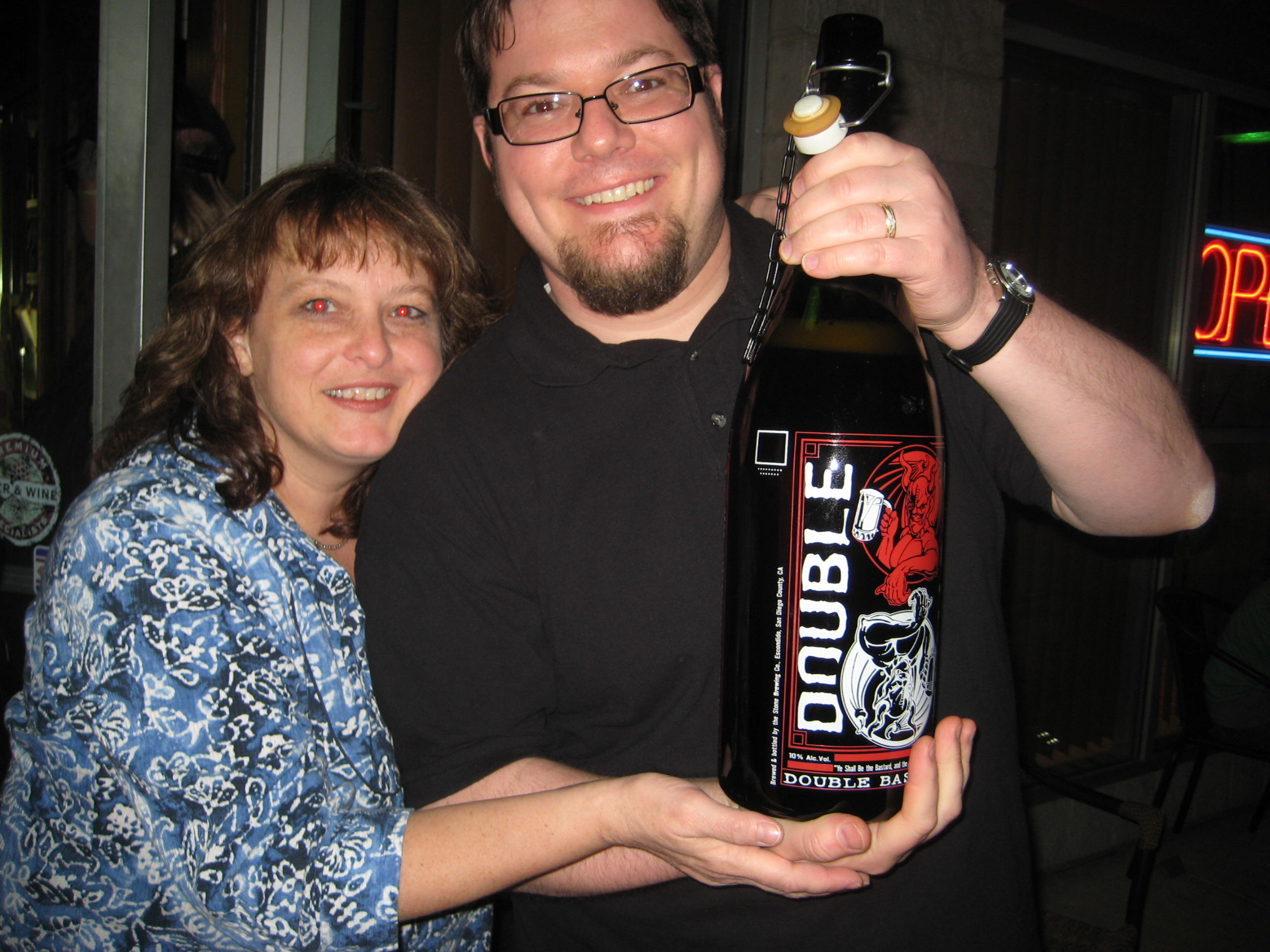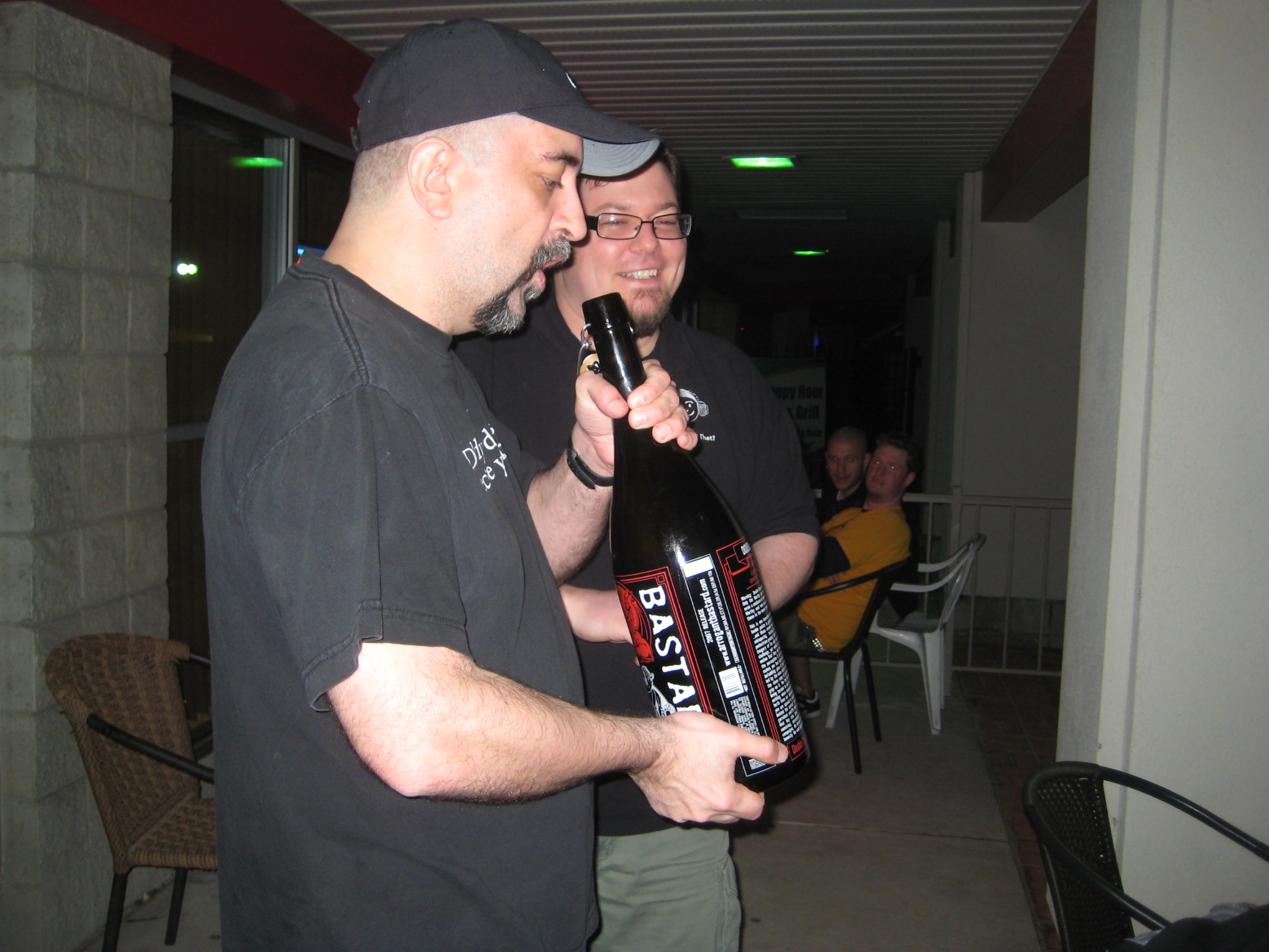 Years ago, Sickpuppy picked up a gigantic bottle of Stone’s Double Bastard, and I’ve pestered him for as long as I’ve known him about finally cracking that sucker open. And with the fifth anniversary of the SIDT show coming up this month, the bottle made the trip to Boardman, where it chilled in VE’s cooler while the festival was going on .
