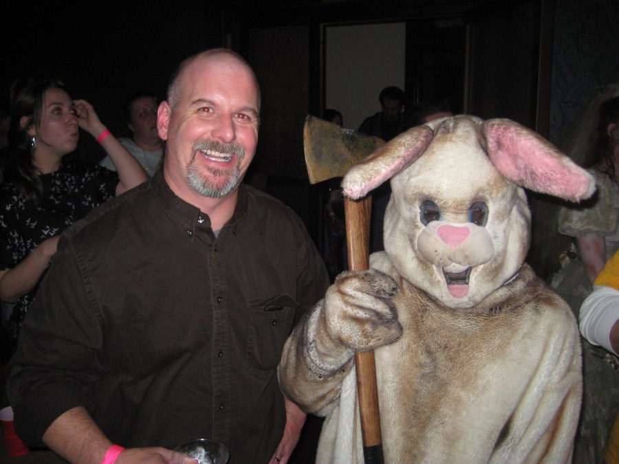 We didn’t have the same chance to torture Michelle and Ginny as we did last year, but they both got up close and personal with one of the Scarehouse’s zombies; that was scarier for Ginny than it was for Michelle — at least until the zombie hugged our favorite non-hugger.