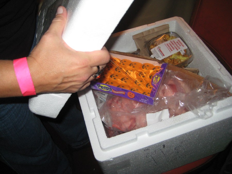 And to our surprise, we did well. We won Andy’s Big Box of Meat for the second year in a row, and we also made off with Gina’s Pittsburgh basket, filled with stuff that will mostly end up on Mrs. Crappy’s desk. We were thrilled with both.