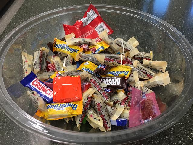 Assorted mini Hershey bars. Reese’s Cups. Oh, man — Butterfingers. They’re pretty much everywhere, all week long.